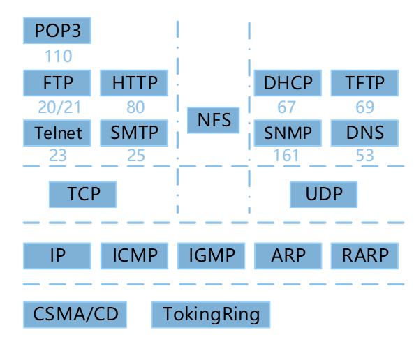 控制端口为21,数据端口为 20 - SMTP(简单邮件传送协议)用于发送邮件,使用25号端口;POP3(邮局协议)用于接收邮件,使用110号端口
