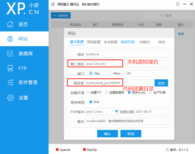 2、PHPStudy设置