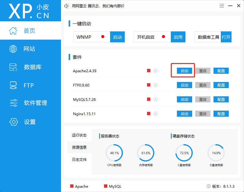 - 打开PHPStudy,启动Apache
