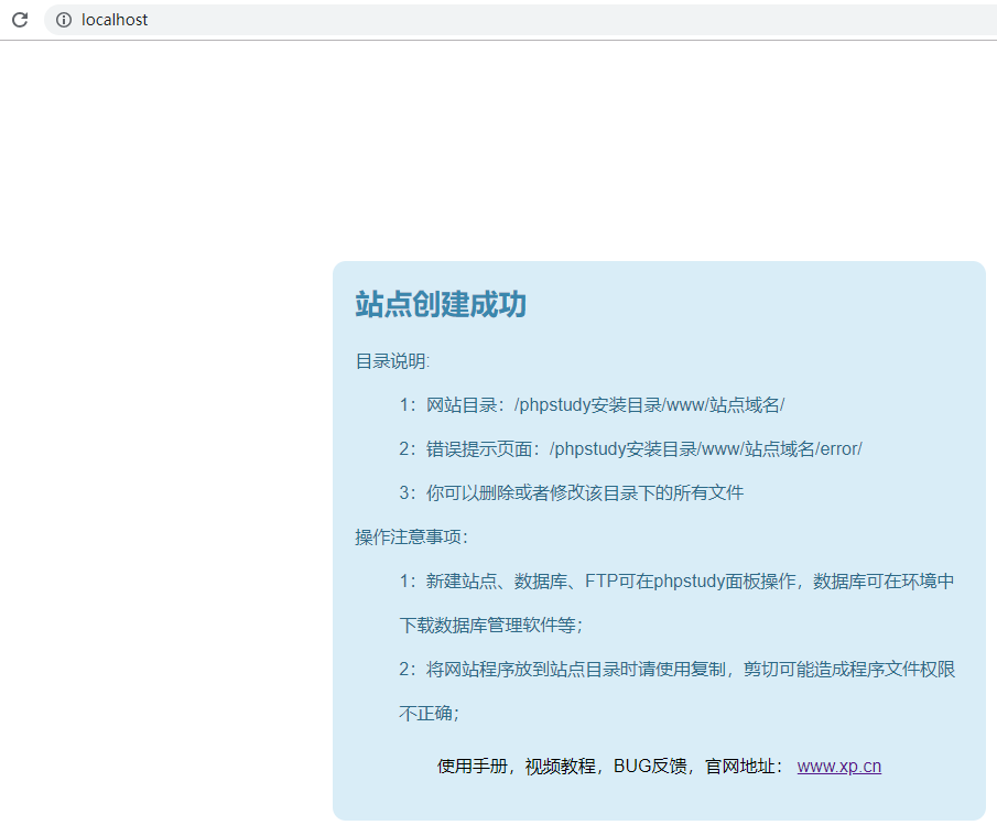 localhost查看,出现如下内容即运行成功。 - 其他设置 设置虚拟域名和代码放置目录