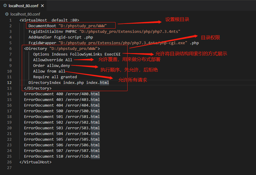 在phpstudy中,httpd.conf和vhost.conf都有配置虚拟目录的指令,需要在vhosts的目录中修改 更改虚拟目录