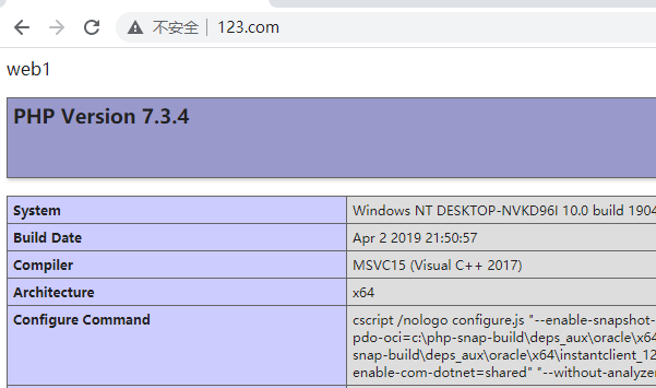 虚拟主机配置 要求:输入www.123.com打开web1的网站