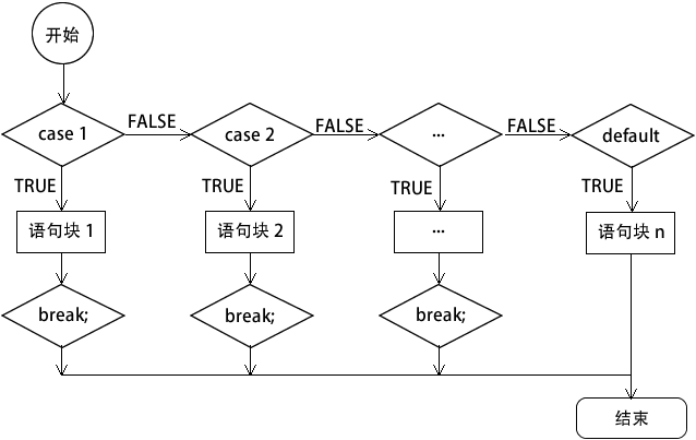 - switch 匹配完成以后,将依次逐条执行匹配的分支模块中的语句,直到 switch 结构结束或者遇到了 break 语句才停止执行。所以,