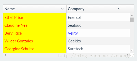 在这个例子中,我们将第一列的字体和背景颜色,第二列公司如果等于“velity”字体颜色就变为蓝色。
