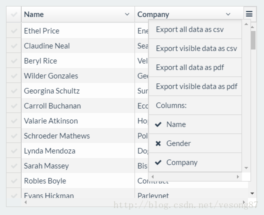 例子 在本示例中, 我们使用表格菜单按钮, 同时显示 pdf 和 csv 导出选项。