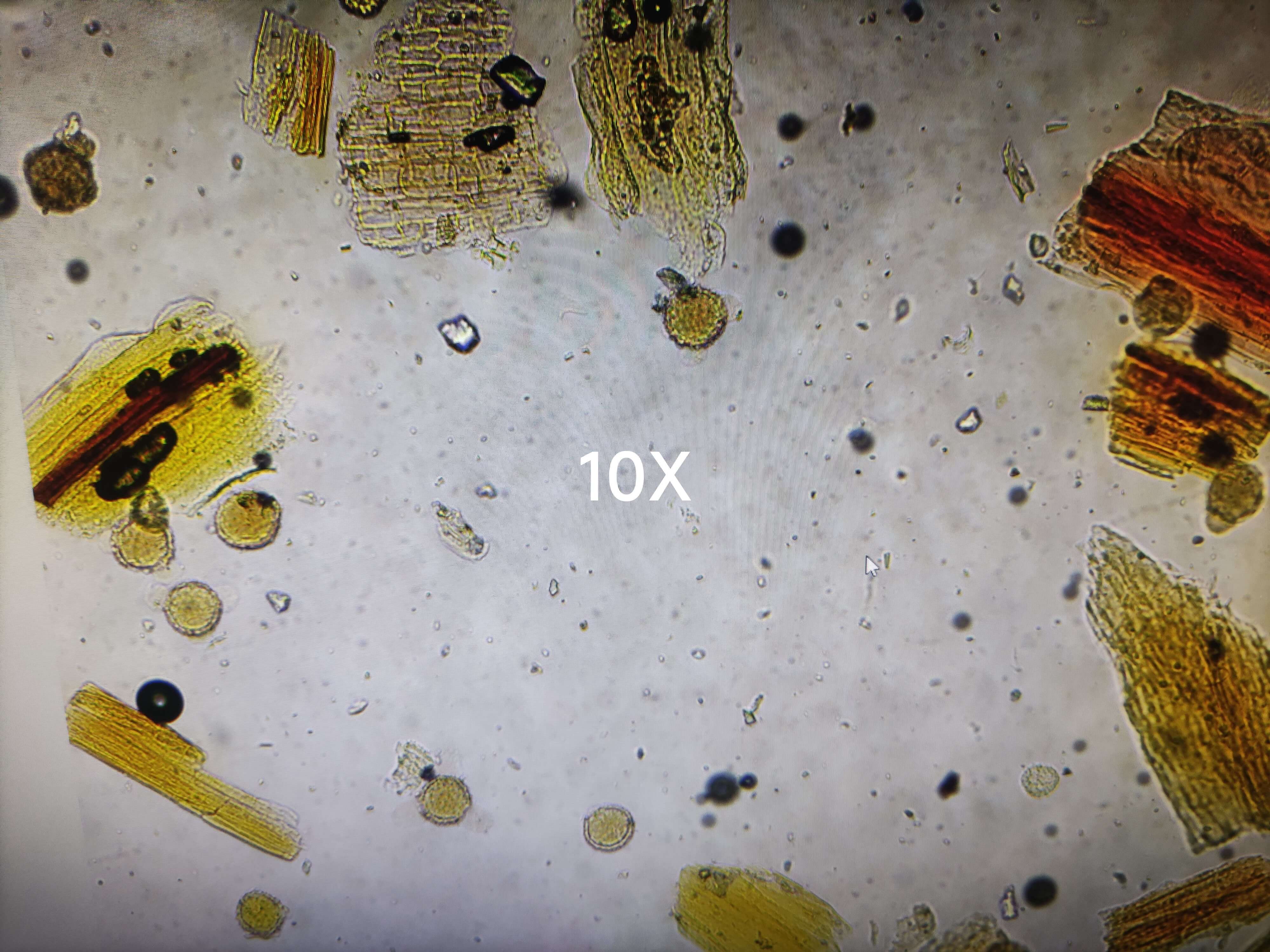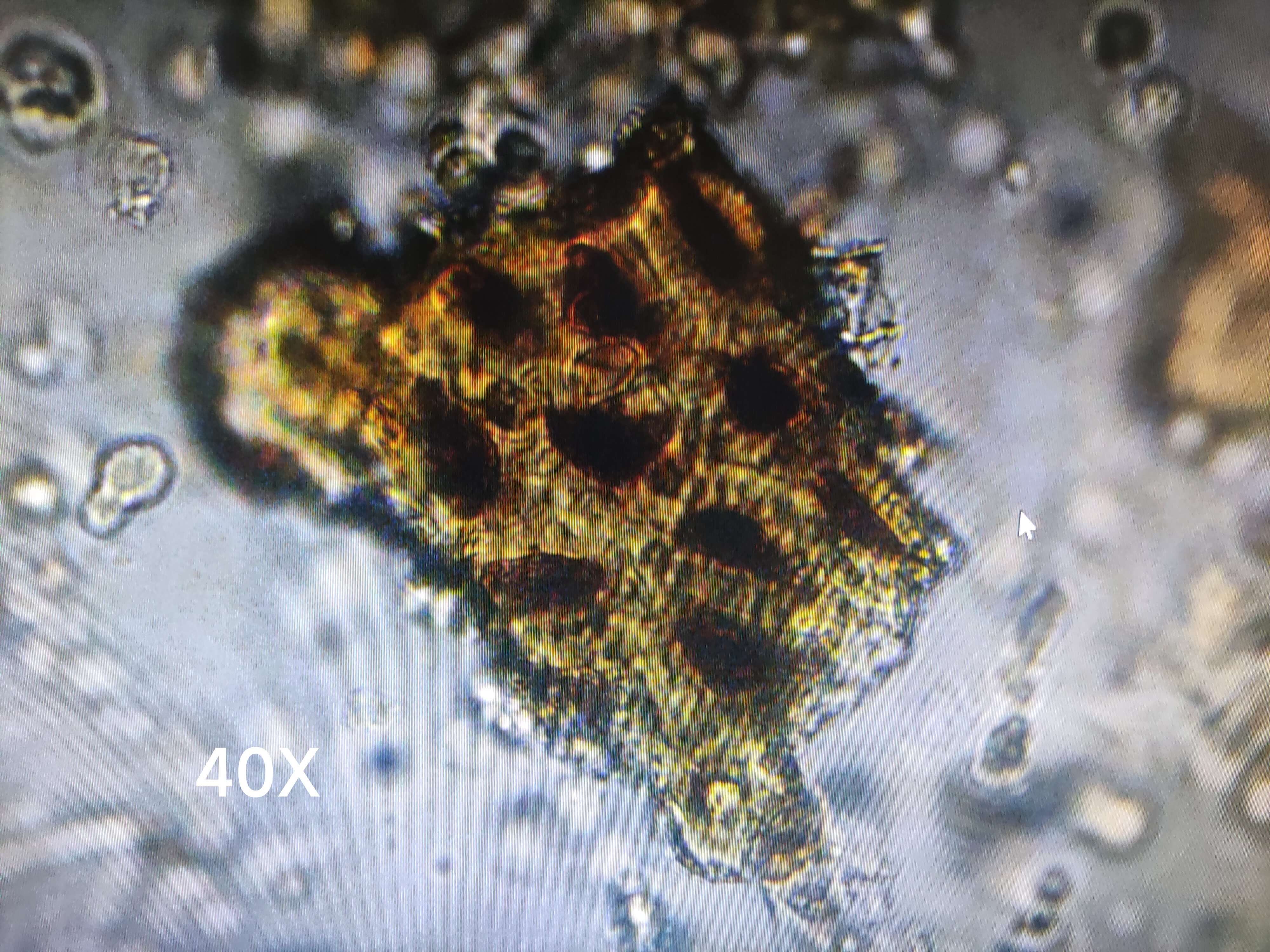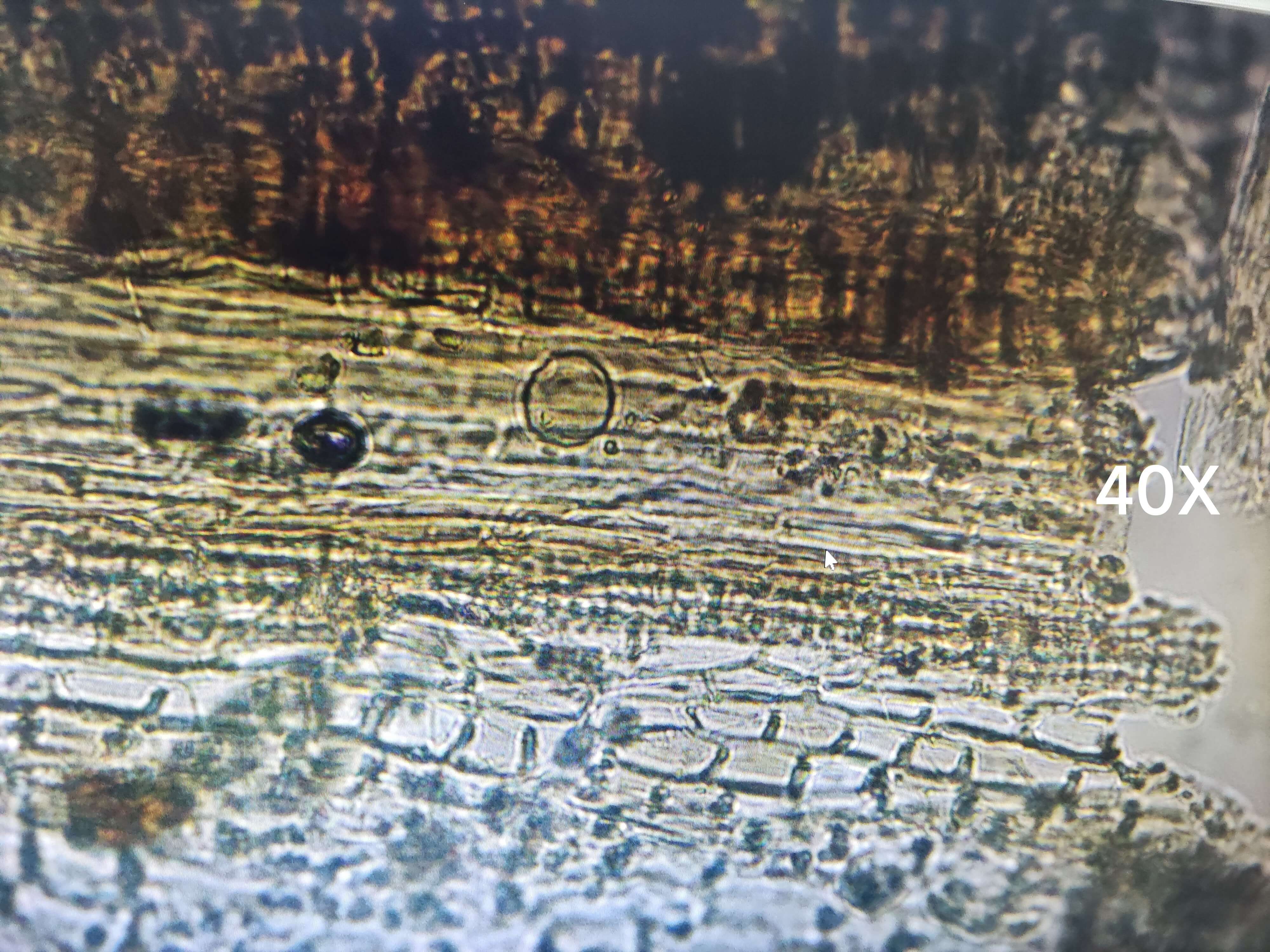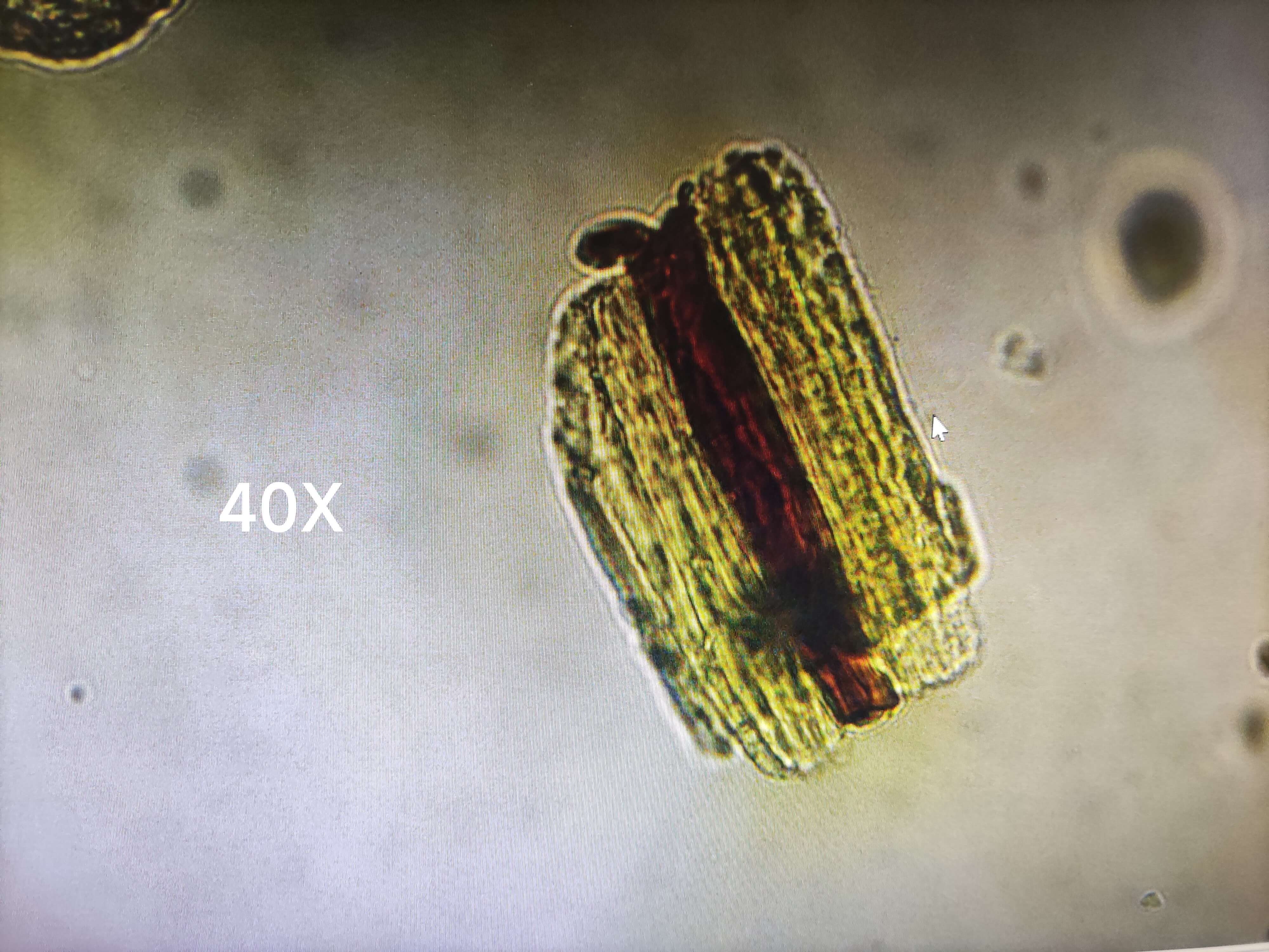 | 【显微重点】 长柱状、薄片状、纤维状或类方形块状物 ,断裂处呈层片状。 |